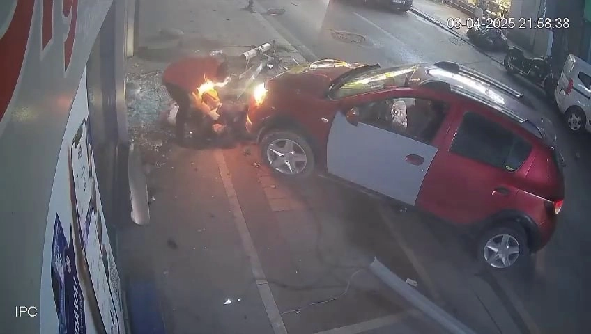 3 kişinin yaralandığı kaza anı an be an güvenlik kamerasına yansıdı.