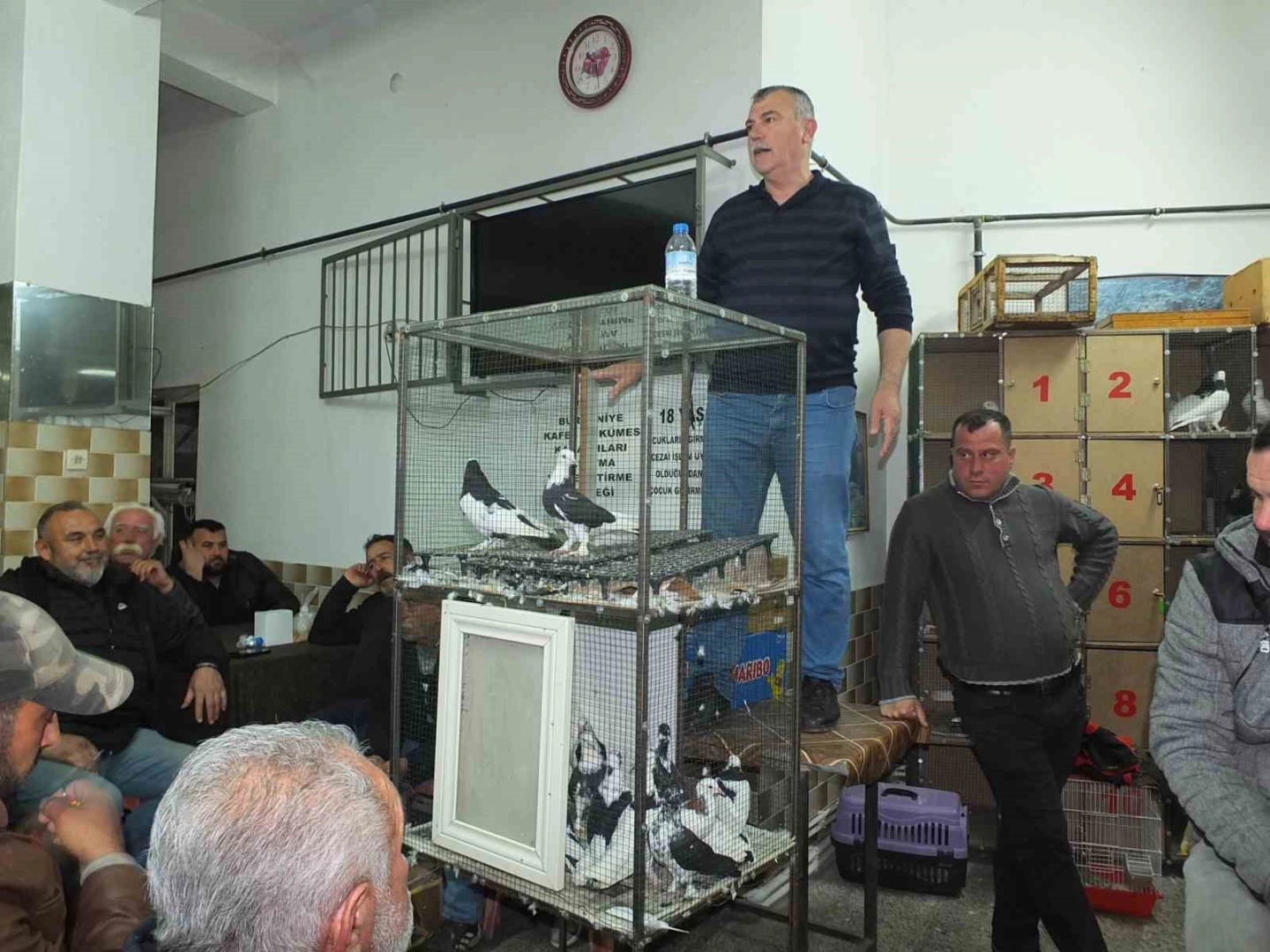 İlçe merkezindeki bir kahvehanede düzenlenen mezatta güvercinler bazen takas bazen de alınıp satılırken, yüzlerce meraklı da bir araya geliyor.