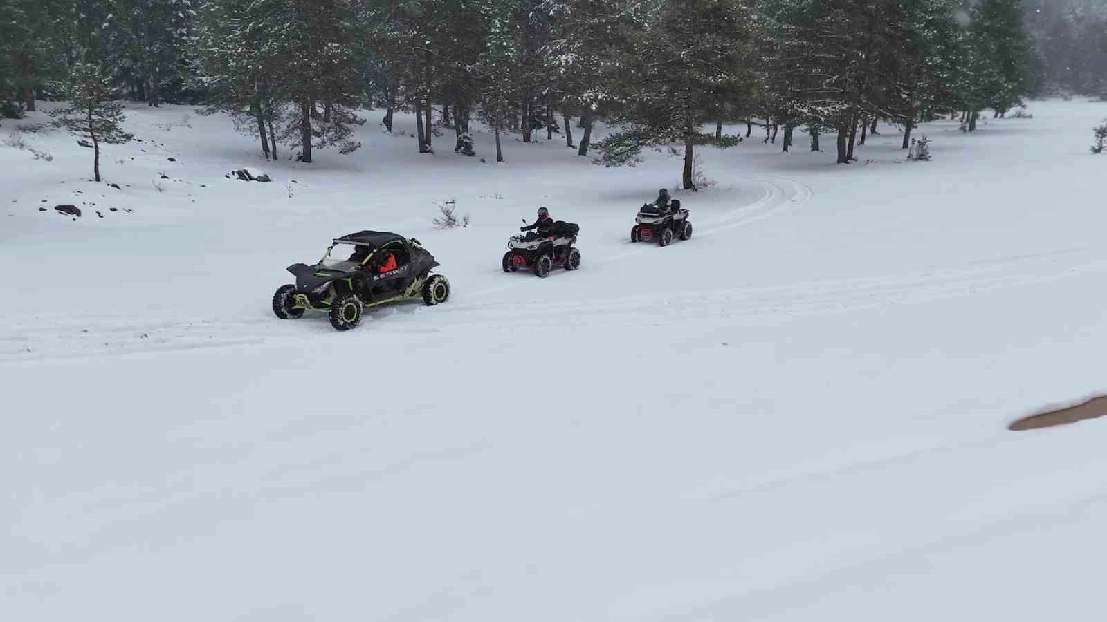 ATV ve UTV araçlarıyla yaylaları gezen grup, kar ve eşsiz kış manzarasının tadını çıkardı.