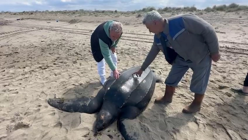 Dünyadaki en büyük sürüngenlerden birisi olarak bilinen, Pasifik, Atlas, Hint okyanusları ve Akdeniz’de görülen deri sırtlı deniz kaplumbağası, Sakarya’nın Karasu ilçesi İhsaniye Mahallesi mevkiinde sahilde ölü olarak bulundu. Geçtiğimiz senelerde ilk kez İstanbul Boğazı’nda görülen bu hayvanın boyu 3 metreye ve kilosu 900 kilograma kadar ulaşabiliyor. Sahilde vatandaşlar tarafından ölü olarak bulunan deri sırtlı deniz kaplumbağası, okyanuslarda en derine dalan ve en büyük mesafeleri kat eden "Şampiyon kaplumbağa" olarak da biliniyor. Soyunun tükenme riskiyle karşı karşıya kalan kaplumbağanın boyutu ise görenleri hayrete düşürdü.