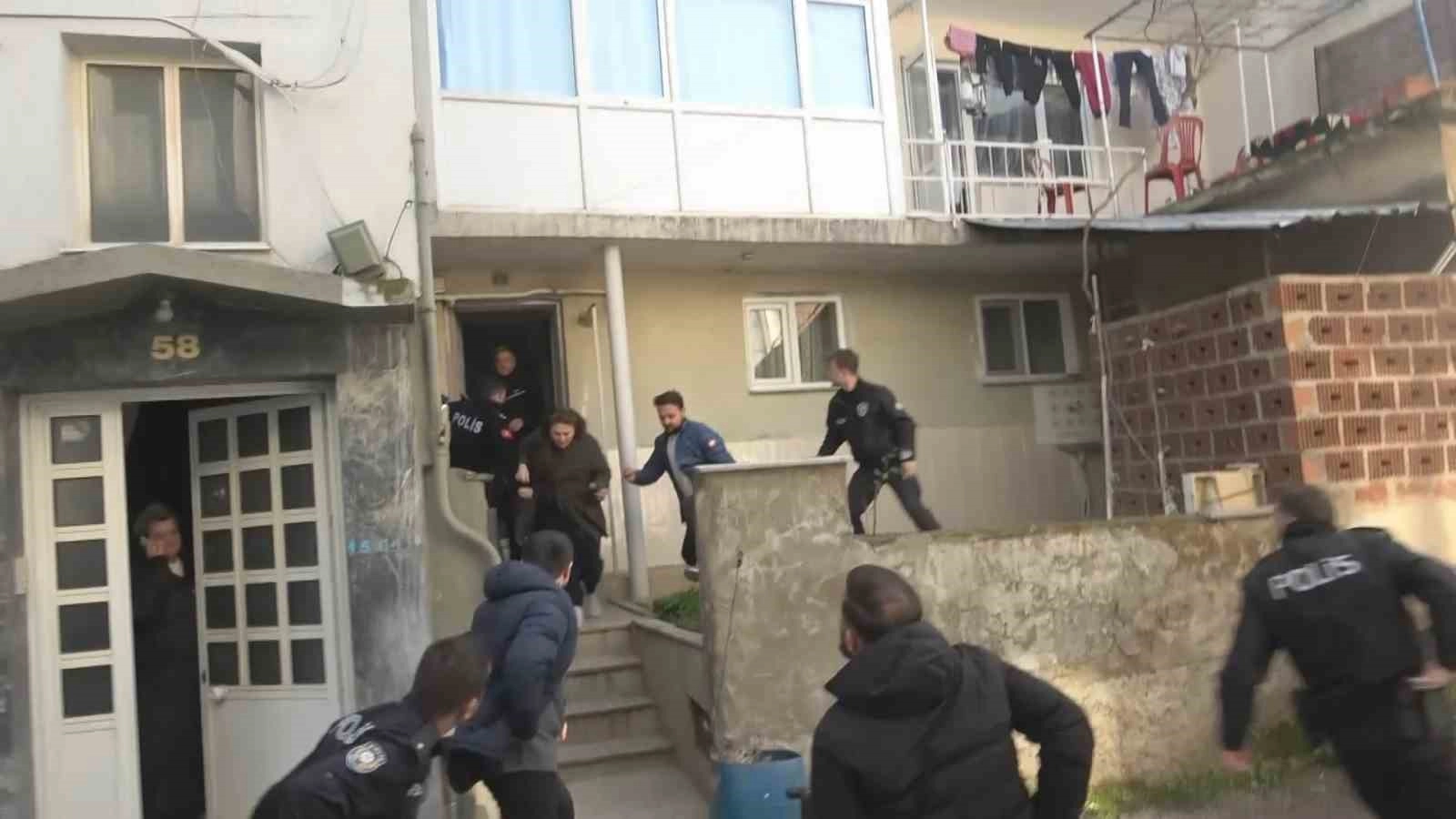 Bursa’da cezaevinden izne gelen şahıs; para vermediği gerekçesiyle balkonda ablasını bıçakla rehin aldı. Ekiplerin bir saatlik ikna çabaları sürerken, alt kata inen abla son anda polislere sığındı. Bıçaklı şahıs kapı önünde ekiplerce gözaltına alınırken, film sahnesini andıran hareketli anlar kameraya yansıdı.