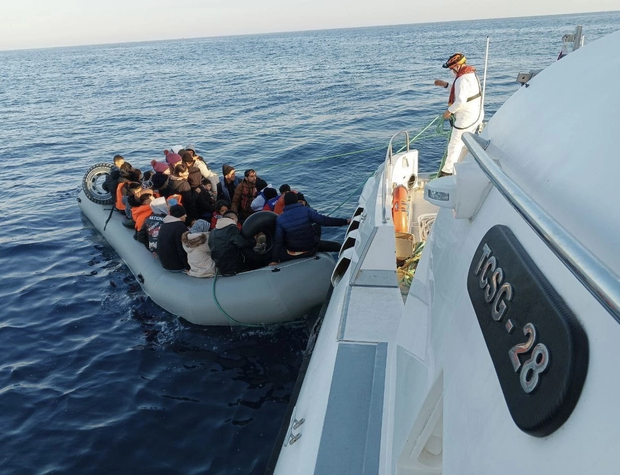 Sahil Güvenlik Kuzey Ege Grup Komutanlığı ekipleri tarafından Ayvacık ilçesi açıklarında kaçak göçmenler olduğu tespit edildi. Bölgeye ekipler sevk edildi. Sahil Güvenlik Botu ‘TCSG-28’ tarafından hareket halinde durdurulan lastik bot içinde 22’si çocuk toplam 46 kaçak göçmen yakalandı.