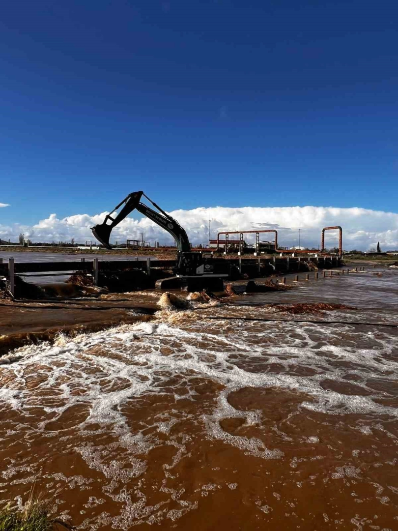 Çanakkale’nin Ayvacık ilçesinde etkili olan şiddetli sağanak yağış nedeniyle taşan Tuzla Çayında çalışmalar devam ediyor.
