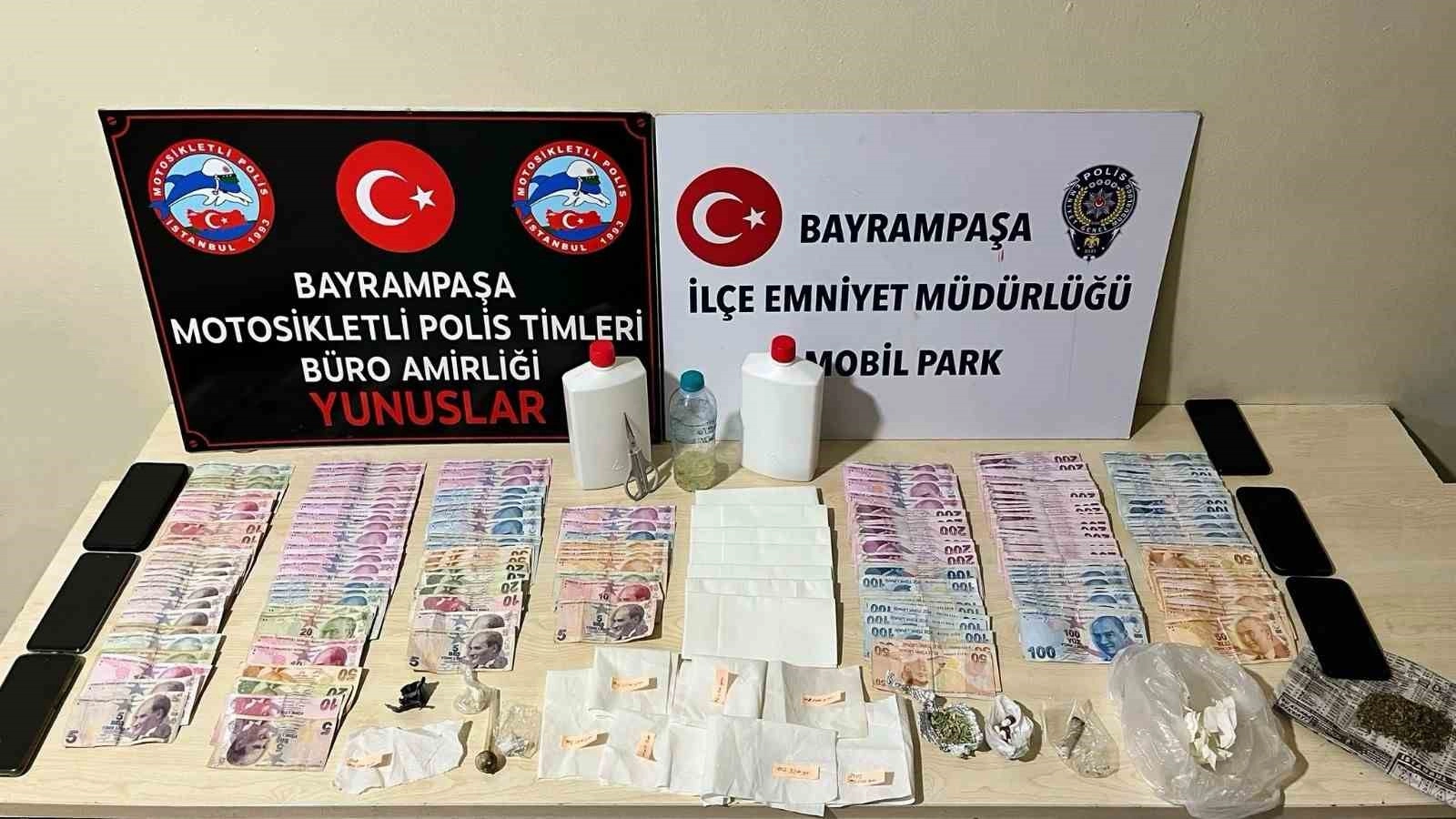 İstanbul Emniyet Müdürlüğü Bayrampaşa İlçe Emniyet Müdürlüğü Motosikletli Polis Timleri Büro Amirliği ekipleri, bir adreste uyuşturucu madde ticaretinin yapıldığını belirledi. İsmetpaşa Mahallesi’nde bulunan adrese ekipler, operasyon düzenledi. Operasyonda, A.A., M.A., E.K., C.K., O.C., A.K.Z. ve Y.E.B. isimli 7 şüpheli, yakalanarak gözaltına alındı. Çok sayıda uyuşturucu madde ele geçirildi