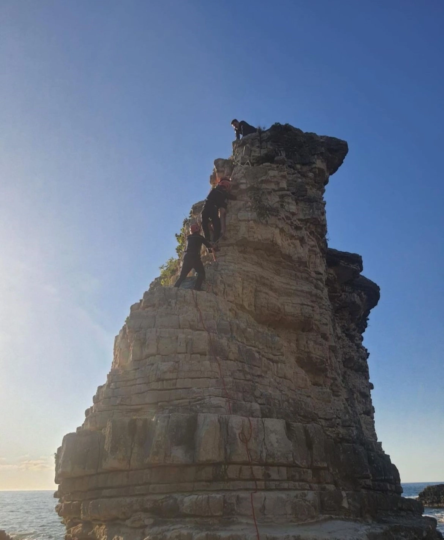 Denize atlamak için tırmandıkları falezde mahsur kalan 2 kişiyi itfaiye kurtardı