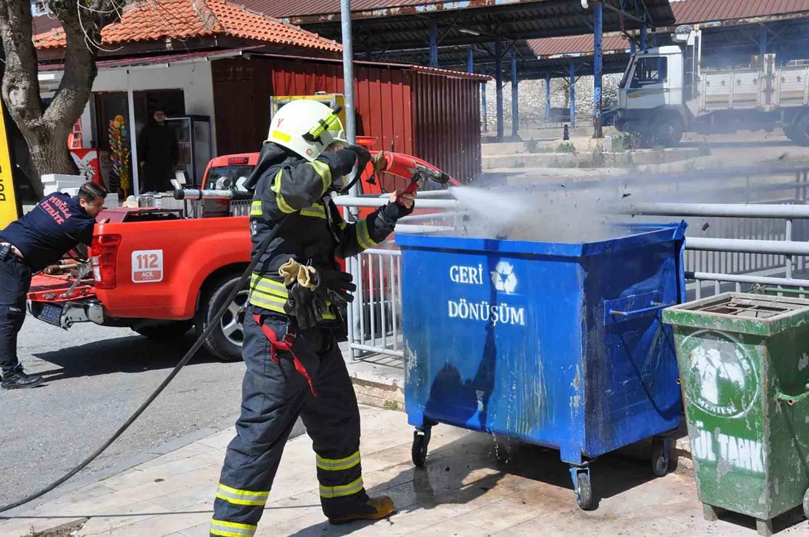Muğla’nın Menteşe ilçesine bağlı Karamehmet Mahallesi’nde çıkan çöp konteyneri yangını itfaiye ekiplerinin müdahalesi ile söndürüldü. Edinilen bilgiye göre, mahallede bulunan geri dönüşüm kutusundan duman yükseldiğini fark eden vatandaşlar 112 Acil Çağrı Merkezine bilgi verdi. İhbarı üzerine olay yerine Muğla Büyükşehir Belediyesi İtfaiye ekipleri sevk edildi. Ekipler, geri dönüşüm kutusu içerisindeki atıkların yanmakta olduğunu belirledi. Yangına hızlı bir şekilde müdahale edilerek alevler kontrol altına alındı ve ardından soğutma çalışması yapıldı. Yapılan ilk incelemelere göre yangının, söndürülmeden konteynere dökülen kül ve kor parçalarından çıkmış olabileceği değerlendirildi. Yangın sonucu geri dönüşüm kutusunda kısmi hasar meydana geldi.