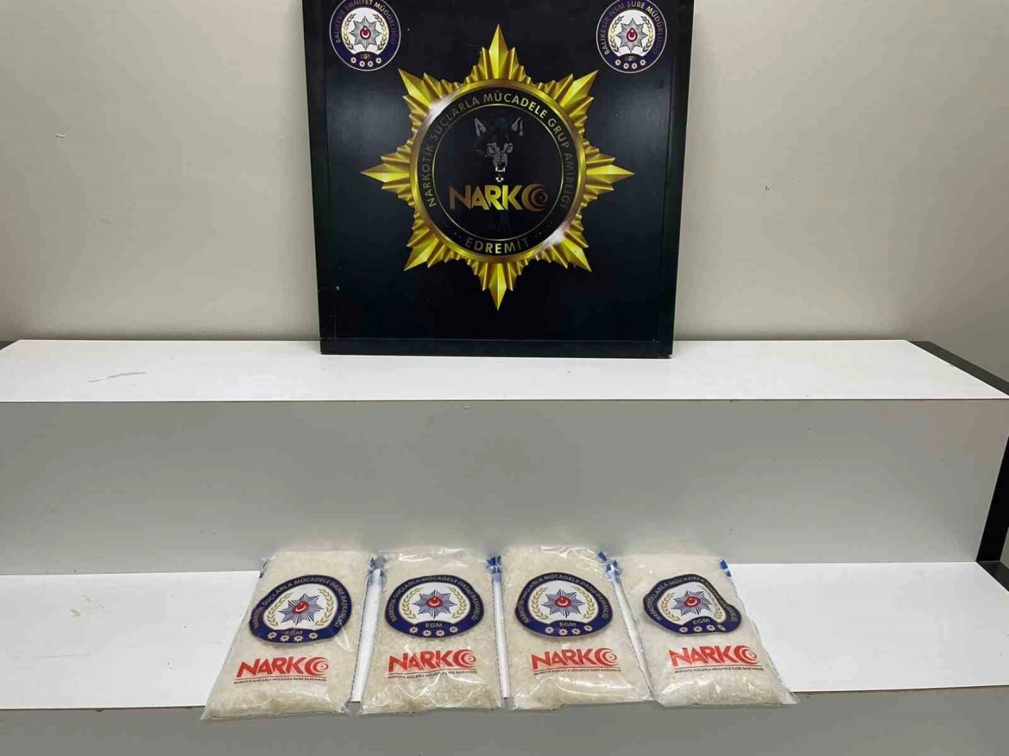 Balıkesir’in Edremit ilçesinde Balıkesir İl Emniyet Müdürlüğü tarafından yapılan operasyonda kumaşlar içine gizlenmiş 4 kilo 36 gram metamfetamin maddesi ele geçirildi.