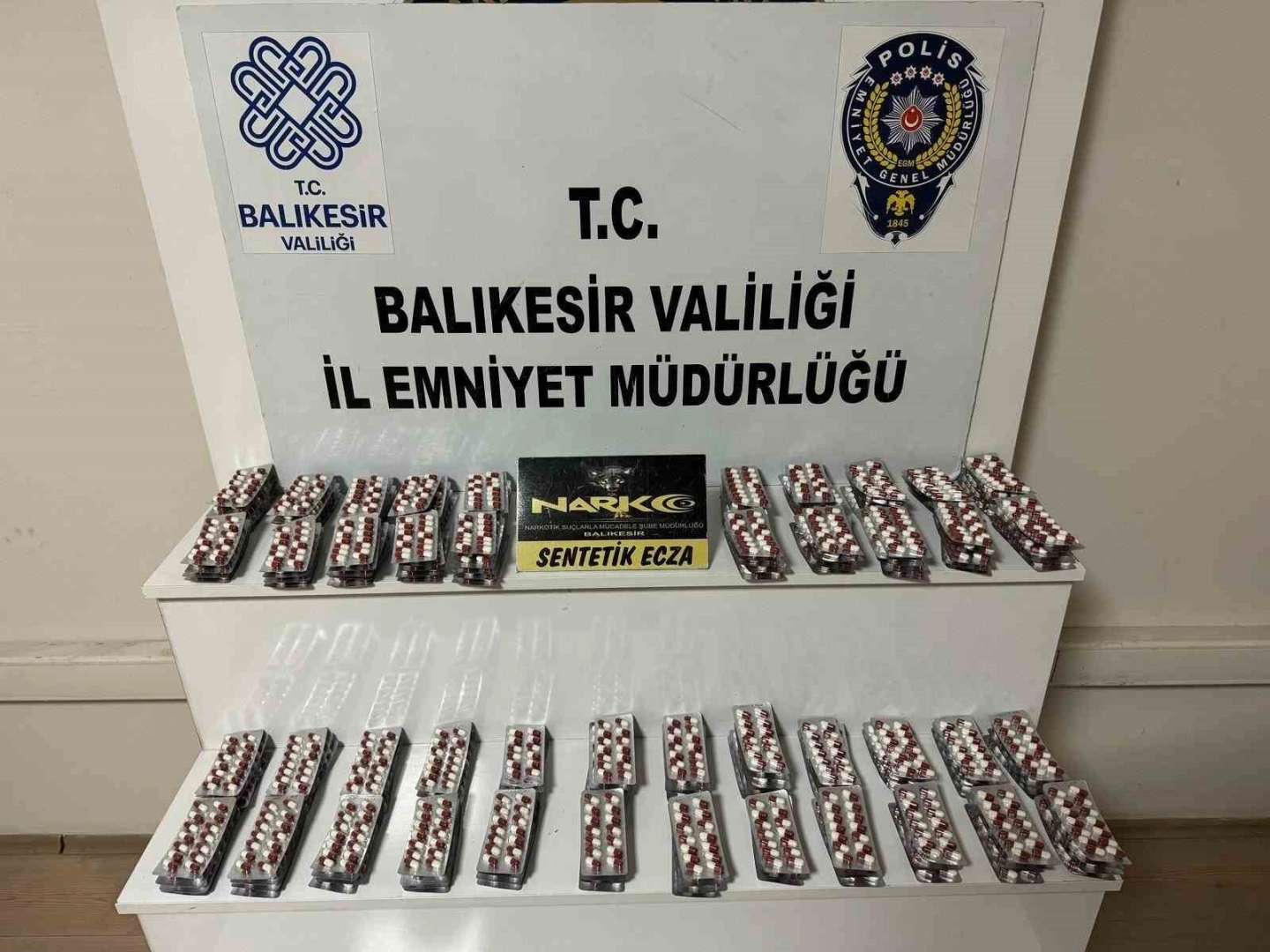 Balıkesir’de polis ekiplerinin durdurdukları araçta 2 bin 767 adet sentetik ecza hapı ele geçirildi.