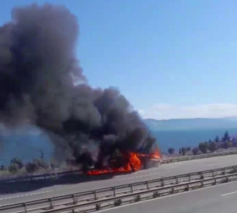 Yangının nasıl başladığını anlatan İbrahim Kader, "Seyir halindeyken sağ arka 2 lastiğim patladı. Aracı cebe çektim sonrasında lastik alev almaya başladı. Yangın söndürme tüpü ile müdahale ettim ama söndüremedim alevler büyüdü. İtfaiye gelip yangını söndürdü. İstanbul’dan gelip İzmit’e gidiyordum" dedi.