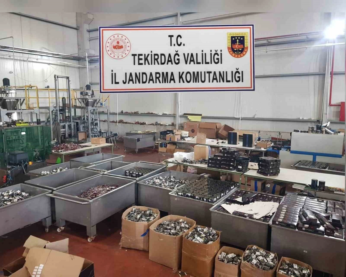 Tekirdağ İl Jandarma Komutanlığınca, Hazine ve Maliye Bakanlığı personeli ile birlikte Çerkezköy Veliköy Mahallesi’ndeki bir fabrikaya operasyon düzenlendi. Operasyonda E.K. isimli şahsa ait tütün fabrikasında, kayıt sistemine bildirim yapılmadan üretilen 50, 250 ve 500 gramlık kutular içerisinde piyasa değeri 3 milyon TL olan 3 ton 100 kilogram nargile tütünü ele geçirildi.