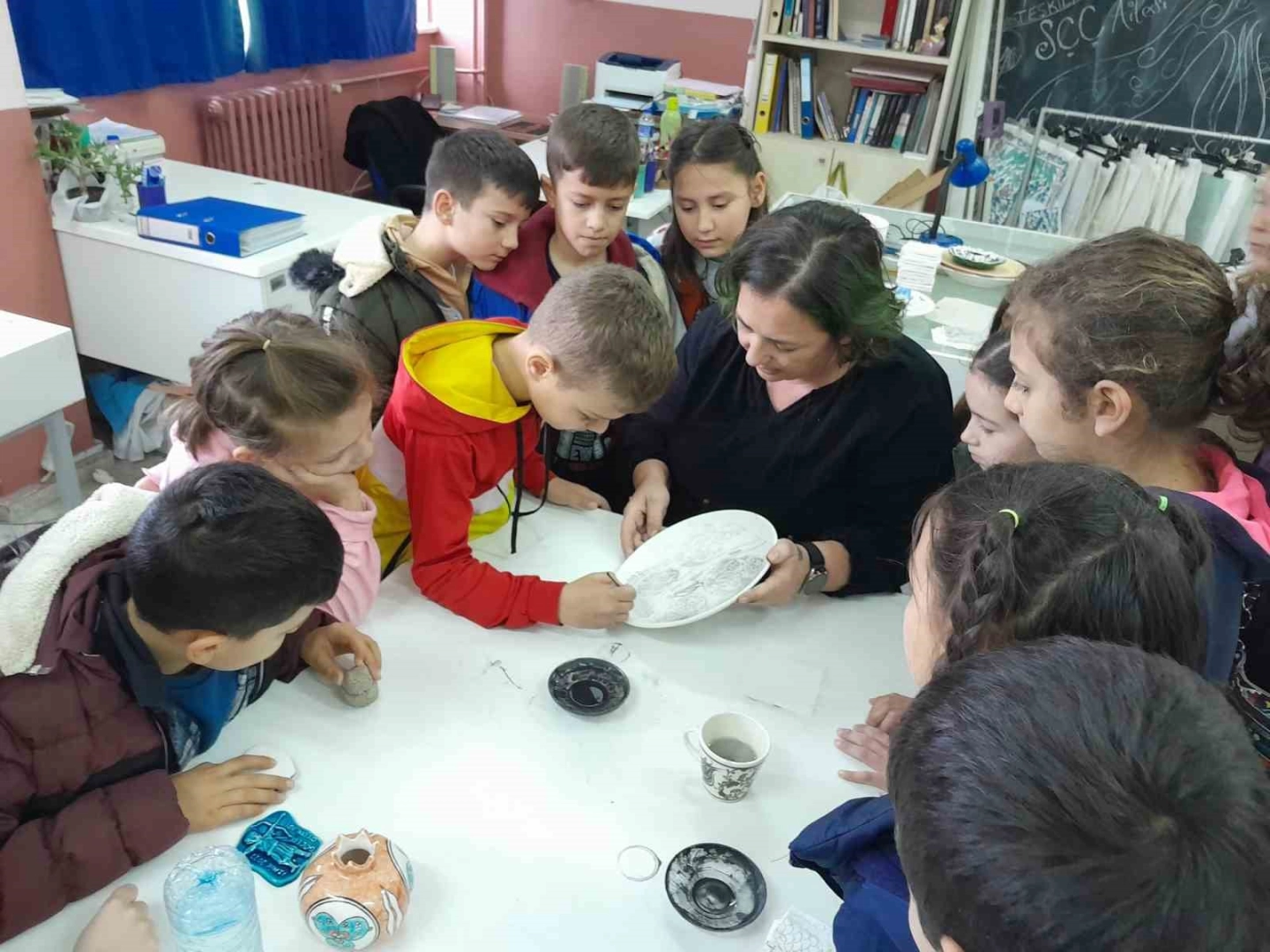 Yüksekokul seramik ve çini atölyelerinde gerçekleşen etkinlikte çocukların ilgi ve heyecanı yüzlerine yansıdı.