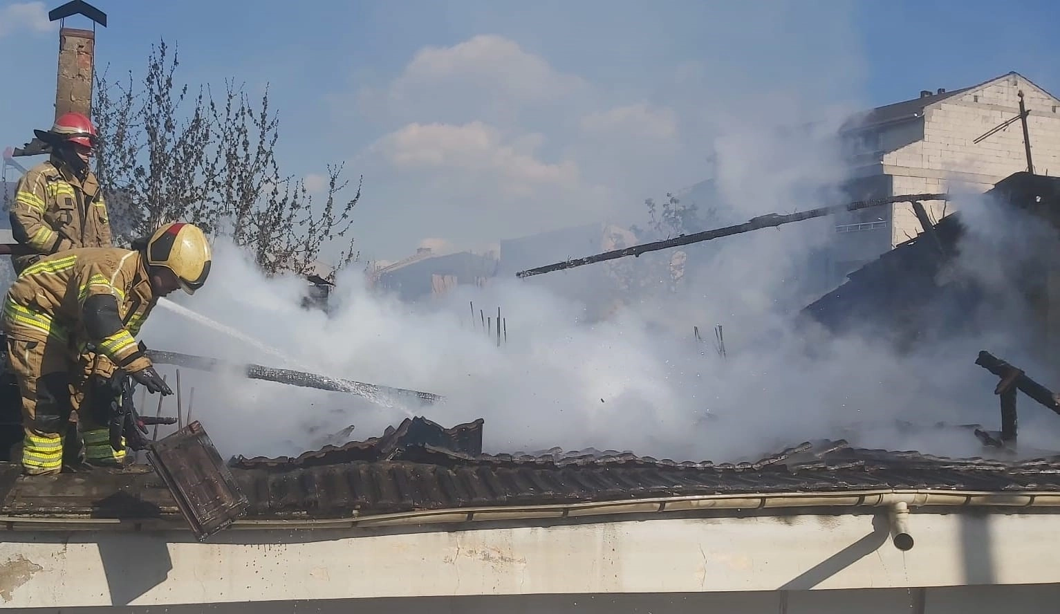 Yangın ve söndürme anları havadan görüntülendi.