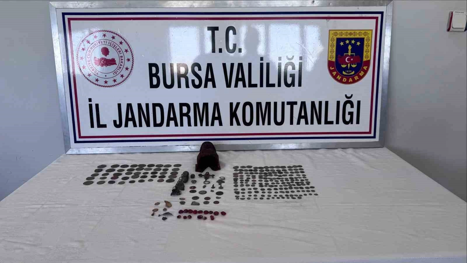 Bursa’nın Gemlik ilçesinde bir araçta yapılan aramada 226 adet sikke ile 1 adet minyatür heykel ele geçirildi.
