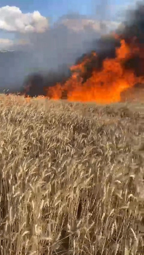 Bursa’nın İnegöl ilçesinde çıkan yangında yaklaşık 50 dönümlük buğday tarlası kül oldu