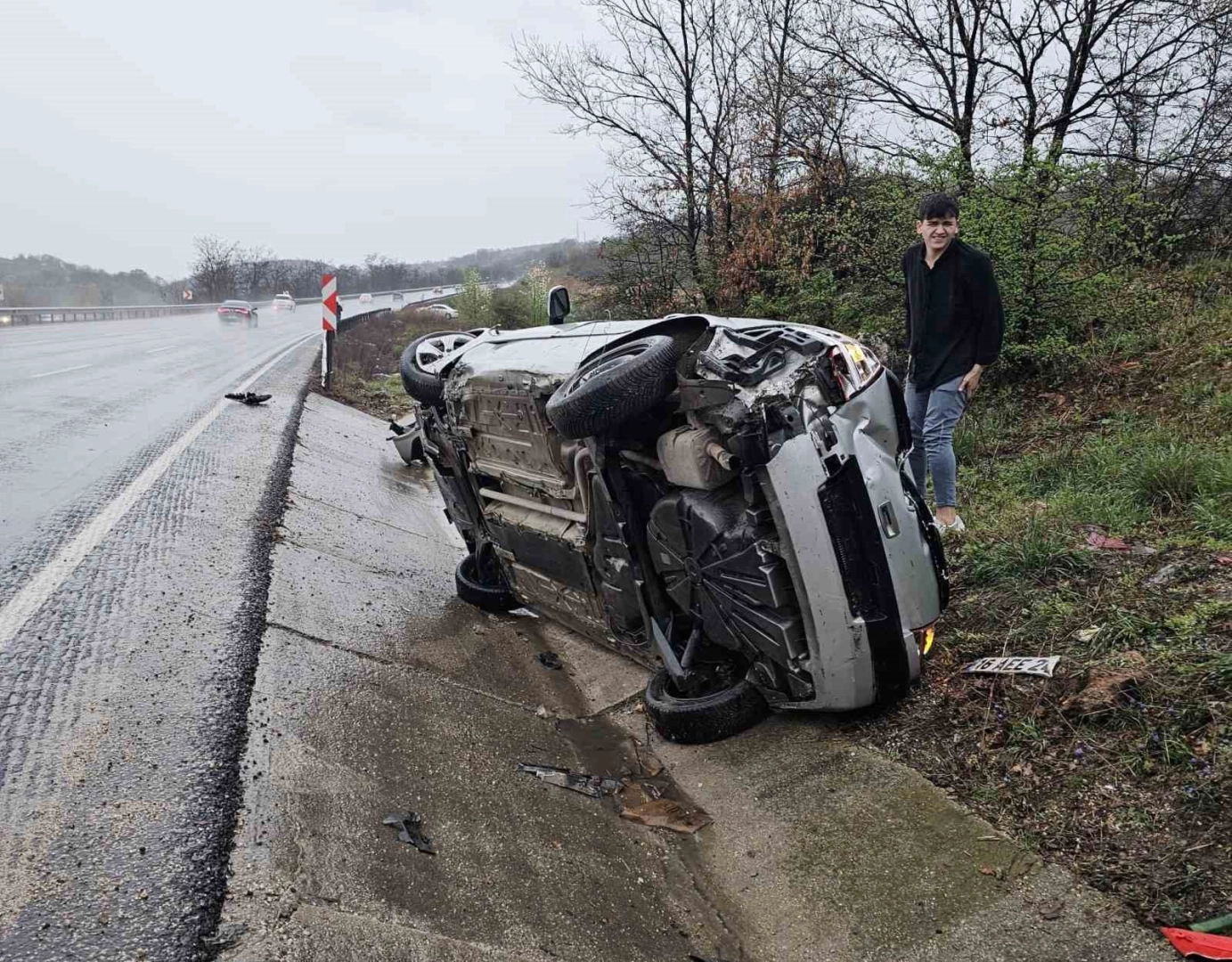 Kaza, saat 19.00 sıralarında Bursa-Ankara karayolu üzeri Kestel ilçesi Ümitalan mahallesi mevkiinde meydana geldi. İnegöl’den Bursa’ya seyir halinde olan Habil B. (20) yönetimindeki 16 AEE 24 plakalı otomobil, yağış nedeniyle kayganlaşan yolda sürücüsünün kontrolünden çıktı. Yoldan çıkan araç yağmur suyu kanalına devrildi. Kazada sürücü ile araçta bulunan Mine K. (20) yaralandı. Yaralılar kaza yerine sevk edilen ambulansla İnegöl Devlet Hastanesine kaldırıldı.