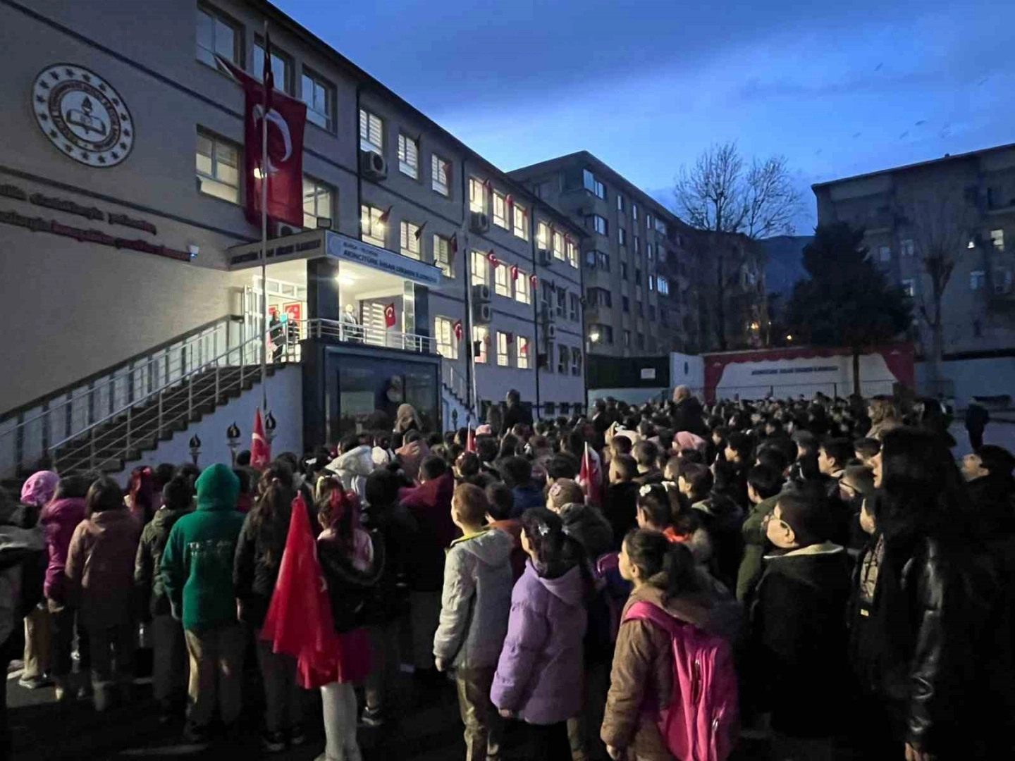 Bursa İl Millî Eğitim Müdürü Gürhan Çokgezer ile Yıldırım İlçe Millî Eğitim Müdürü Mustafa Sevinç’inde katıldığı anma programında duygu dolu anlar yaşandı. Yıldırım ilçesi Akıncıtürk İhsan Dikmen İlkokulu bahçesinde bir araya gelen öğretmenler ve öğrenciler, depremde hayatını kaybedenler için saygı duruşunun ardından İstiklal Marşı’nı hep birlikte okuyarak birlik ve beraberlik duygularını pekiştirdi.
