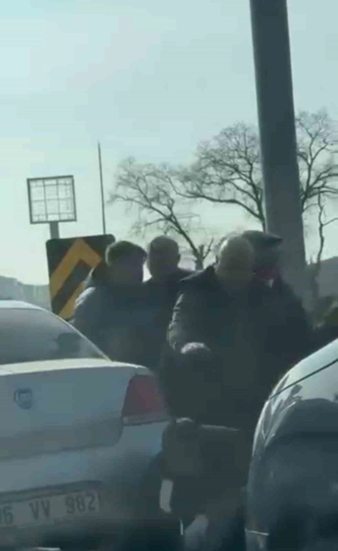 Olay merkez Osmangazi ilçesi İzmir Yolu caddesi Acemler mevkiinde meydana geldi. İddiaya göre, yoğun trafikte ilerlemeye çalışan iki sürücü yol verme meselesi nedeniyle sözlü tartışmaya başladı. Kısa sürede büyüyen tartışma kavga dönünce, öfkeli taraflar araçlarından inip bir birlerine tekme tokat vurmaya başladı. Öfkeli tarafların caddeyi ringe çevirdiği anlar kameraya yansırken, tarafları çevredekiler ayırdı.