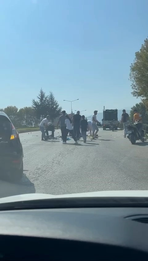 Bursa’nın İnegöl ilçesinde kamyonetten yere düşen armutlar, diğer sürücülerin yardımıyla birlikte kısa sürede toplandı.