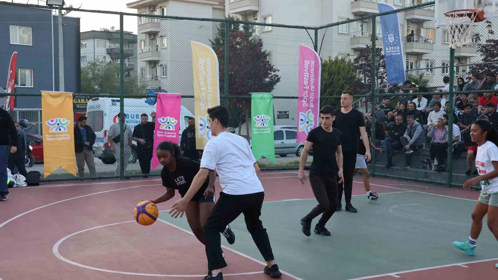 Bursa Büyükşehir Belediyesi tarafından Bursa Uluslararası Spor Festivali kapsamında düzenlenen ’Sokak Basketbolu Turnuvası’, gençlerin kıyasıya mücadelesine sahne oldu.