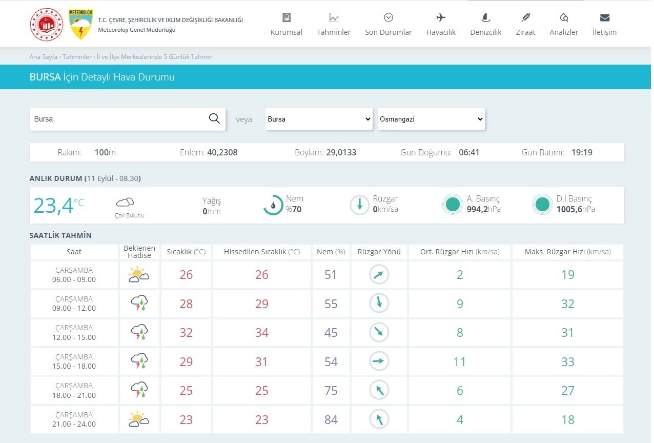 Gün boyu en yüksek sıcaklığın 32 olacağı Bursa’da, en düşük sıcaklık 20 derece olması tahmin ediliyor.
