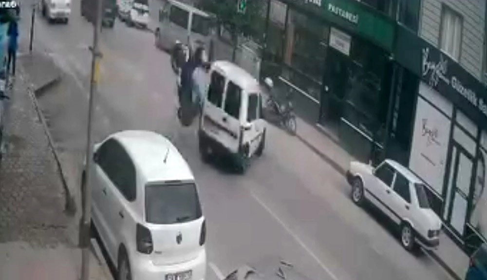 Kaza anı bir iş yerinin güvenlik kamerasına saniye saniye yansırken, ehliyetsiz çıkan motosiklet sürücüsü 18 bin lira cezadan kaçamadı.