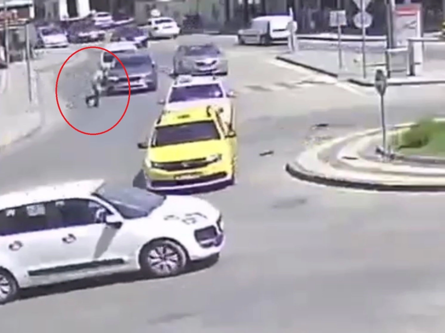 Olay, merkez Osmangazi ilçesi Çekirge Mahallesi’nde meydana geldi. Otobüs durağında bekleyen ve bir anda koşarak yola fırlayan vatandaş seyir halindeki otomobilin önüne çıktı. Sürücü frene bassa da çarpışma kaçınılmaz oldu. Çarpmanın etkisiyle yere savrulan şahıs korkulu anlar yaşatsa da kısa sürede kendisini toplayıp sanki hiç kazaya karışmamış gibi yoluna devam etti. Görenleri hayrete düşüren kaza anı çevredeki bir iş yerinin güvenlik kamerasına saniye saniye yansıdı. Kazayla ilgili soruşturma başlatılırken, vatandaşlara da yaya geçidi kullanma uyarısı yapıldı.