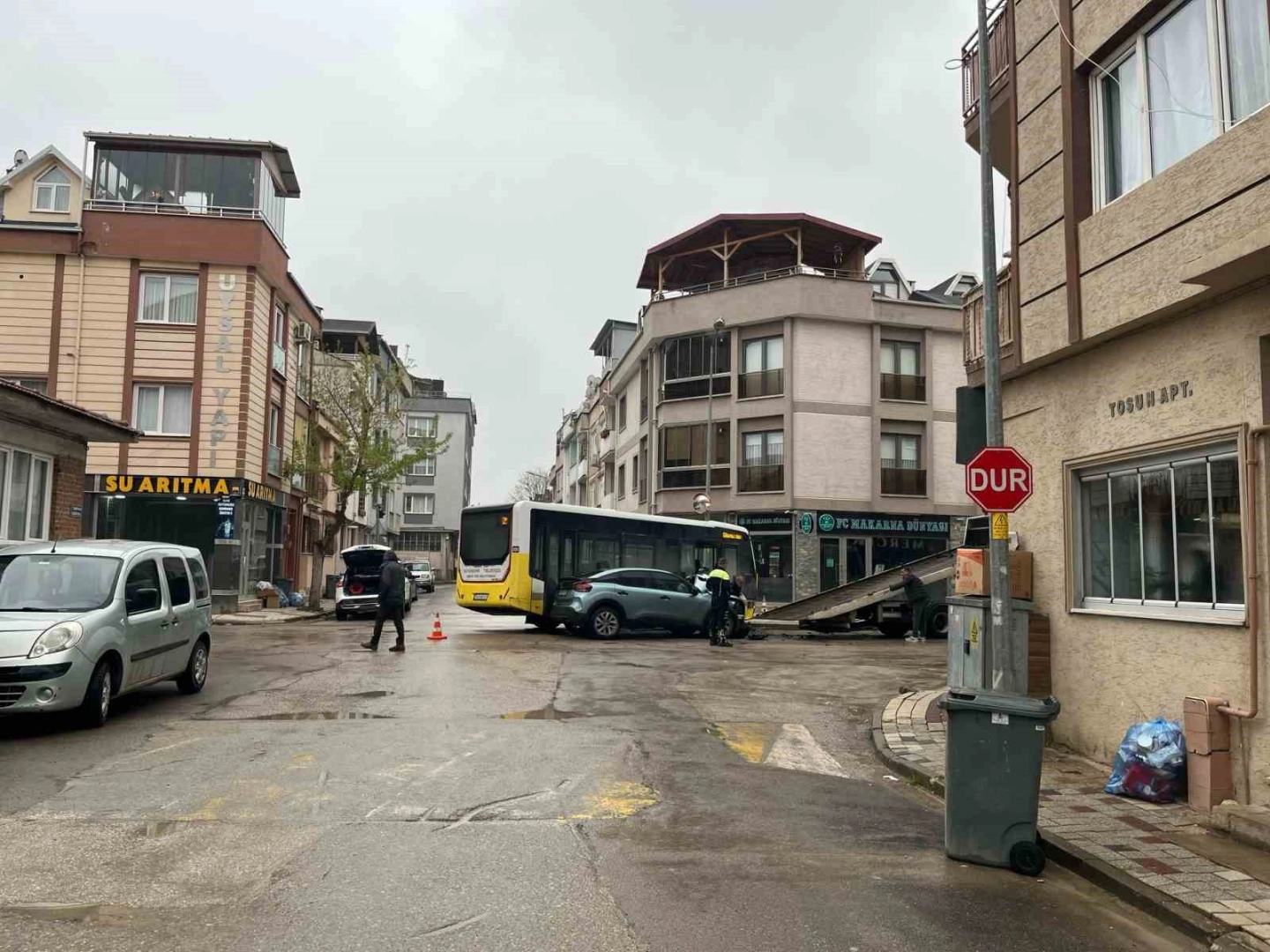 Kaza, saat 09.00 sıralarında Osmaniye Mahallesi Altay Caddesi üzerinde meydana geldi. Erdinç K.(33) yönetimindeki 16 M 06101 plakalı özel halk otobüsüne, Gaziler Sokaktan çıkan sürücü Dilek T.(27) yönetimindeki 16 ASH 563 plakalı Citroen otomobil yandan çarptı. Çarpmanın etkisiyle araçlar savruldu. Kaza sonucu otomobilin sürücüsü ile araçtaki yolcular Güler G.(40) ile Sena G.(26) yaralandı. Yaralılar kaza yerine sevk edilen Ambulansla İnegöl Devlet Hastanesine kaldırıldı.
