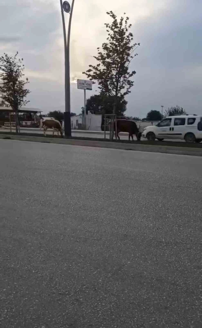 O anlar kameraya yansıdı. Sürücüler trafiğin tehlikeye atılmaması için hayvanların sahiplerine çağrıda bulundu.