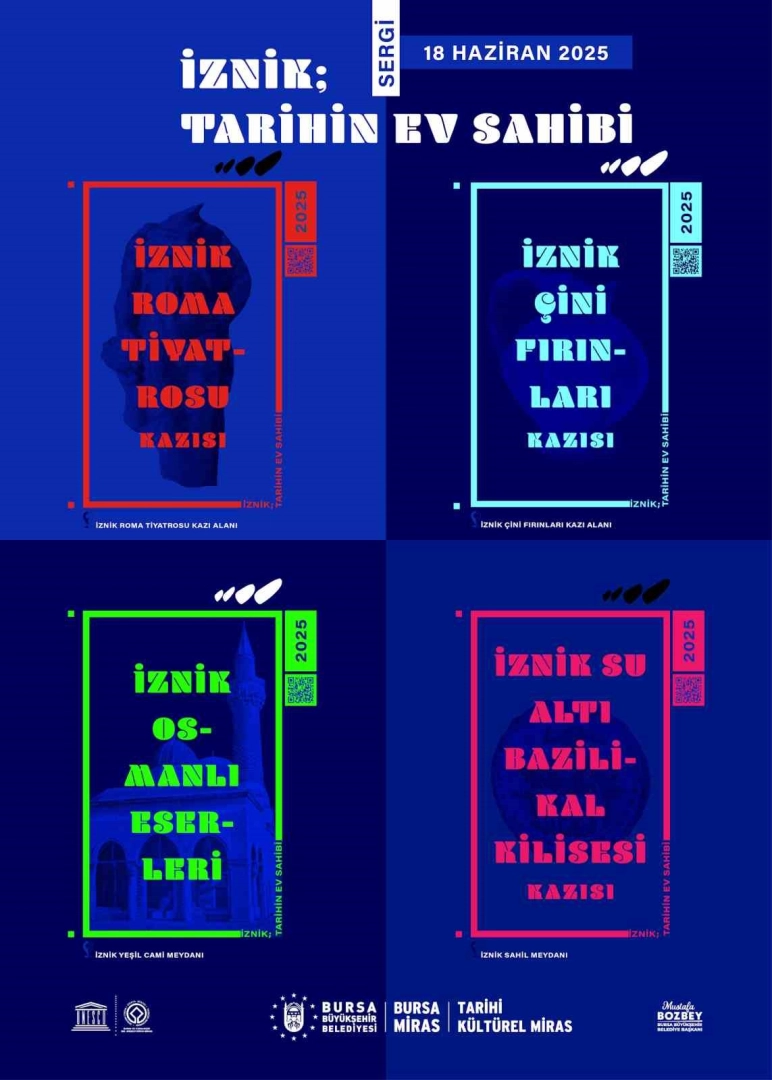 Kent Tarihi ve Tanıtımı Dairesi Başkanlığı eliyle tarihi ve kültürel mirasın korunması ve gelecek nesillere aktarılması için pek çok çalışma yürüten Büyükşehir Belediyesi, 18 Haziran-30 Eylül tarihleri arasında ziyarete açılacak ‘İznik: Tarihin Ev Sahibi Sergileri’ ile de arkeolojik ve kültürel miras alanlarının daha da görünür olmasına katkı sağlayacak. İznik Roma Tiyatrosu kazı alanı ile İznik Çini Fırınları kazı alanında ziyarete açılacak iki sergide, her iki alanın da hikâyeleri, tespit edilen buluntular ve kazı çalışmalarına ilişkin bilgiler yer alacak. İznik Gölü Sahil Meydanı’nda ‘İznik Göl Bazilika Kazı Sergisi’, İznik Yeşil Cami Meydanı’nda ise ‘İznik Osmanlı Eserleri Sergisi’ ziyaretçilerle buluşacak.