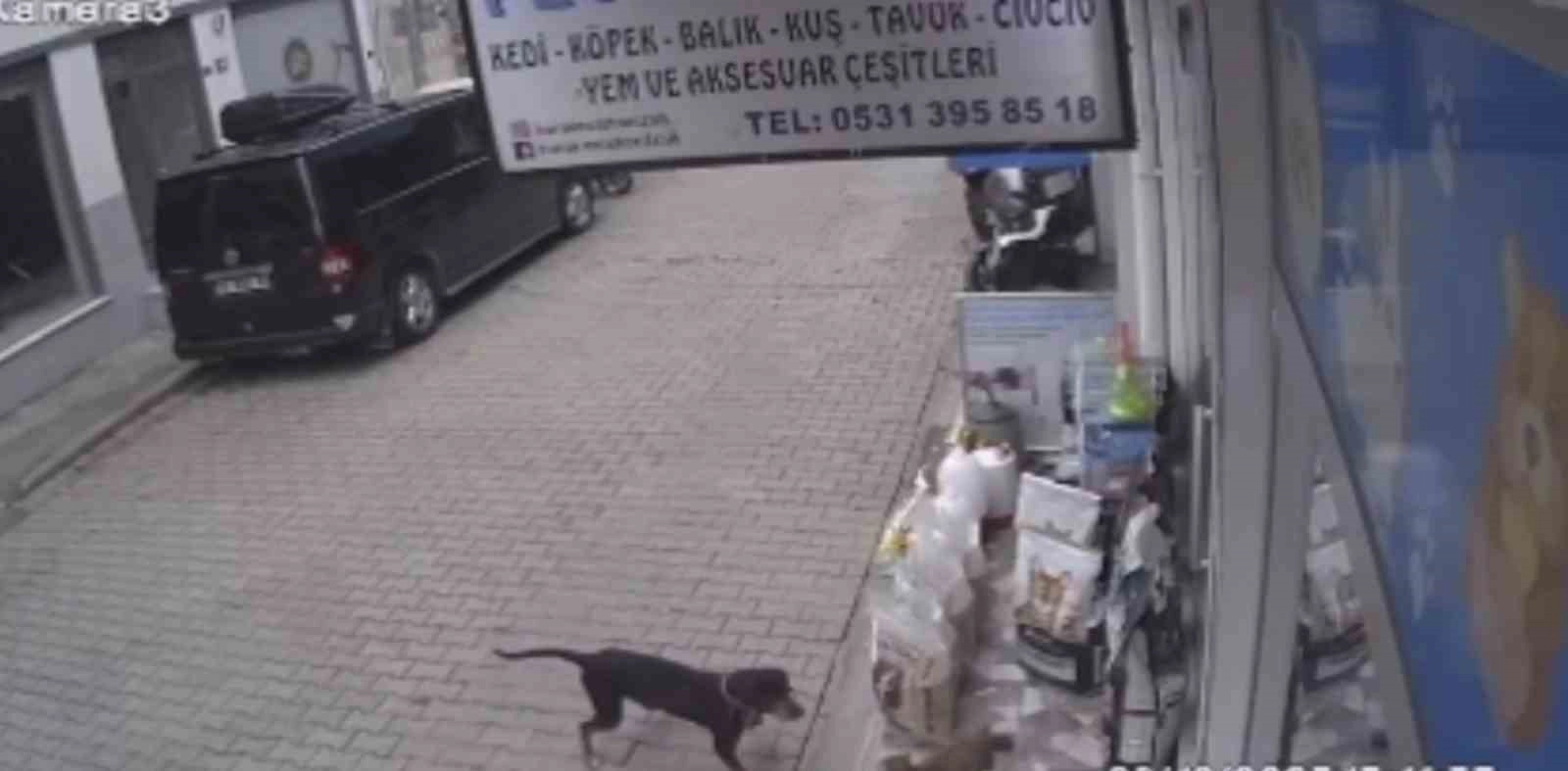 Bursa’da bir köpeğin kediyi kıskanıp dolu mama kabını alarak karşı kaldırıma geçtiği anlar gülümsetti.