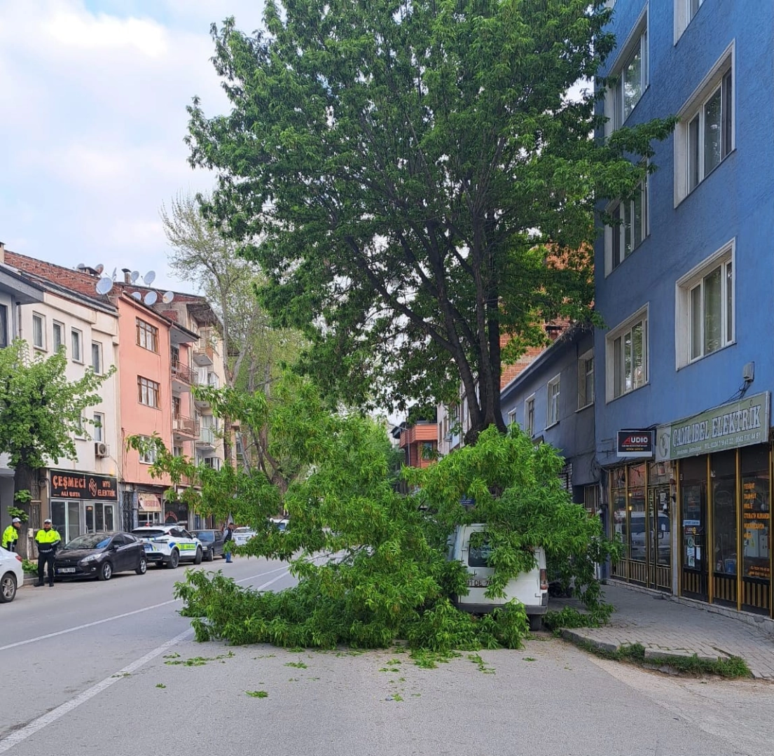 Olay, Bursa’nın İnegöl ilçesi Mahmudiye Mahallesi Kasımefendi Caddesi üzerinde meydana geldi. Yol kenarındaki ağacın büyük dalı, bir anda kırılarak park halindeki aracın üzerine düştü. Yolun bir şeridi ulaşıma kapandı. Park halindeki 11 DE 703 plakalı araçta hasar meydana geldi.