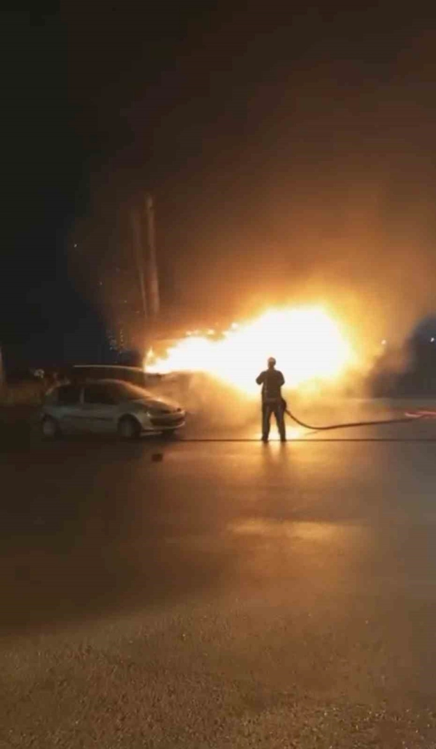 Yangın, merkez Osmangazi ilçesinde meydana geldi. Seyyar olarak kokoreç satılan araçta henüz bilinmeyen bir sebeple yangın çıktı. Yangını gören vatandaşlar durumu itfaiye ekiplerine bildirdi. İhbar üzerine olay yerine gelen itfaiye ekipleri yangını söndürürken, araç kullanılamaz hale geldi. Alev alev yanan araç, amatör kameraya yansıdı.