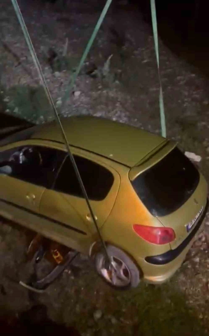 Bursa’da gece saatlerinde meydana gelen trafik kazasında, bir sürücü yola aniden çıkan köpeğe çarpmamak için manevra yapınca, yaklaşık 4 metrelik yükseklikten şarampole uçtu.