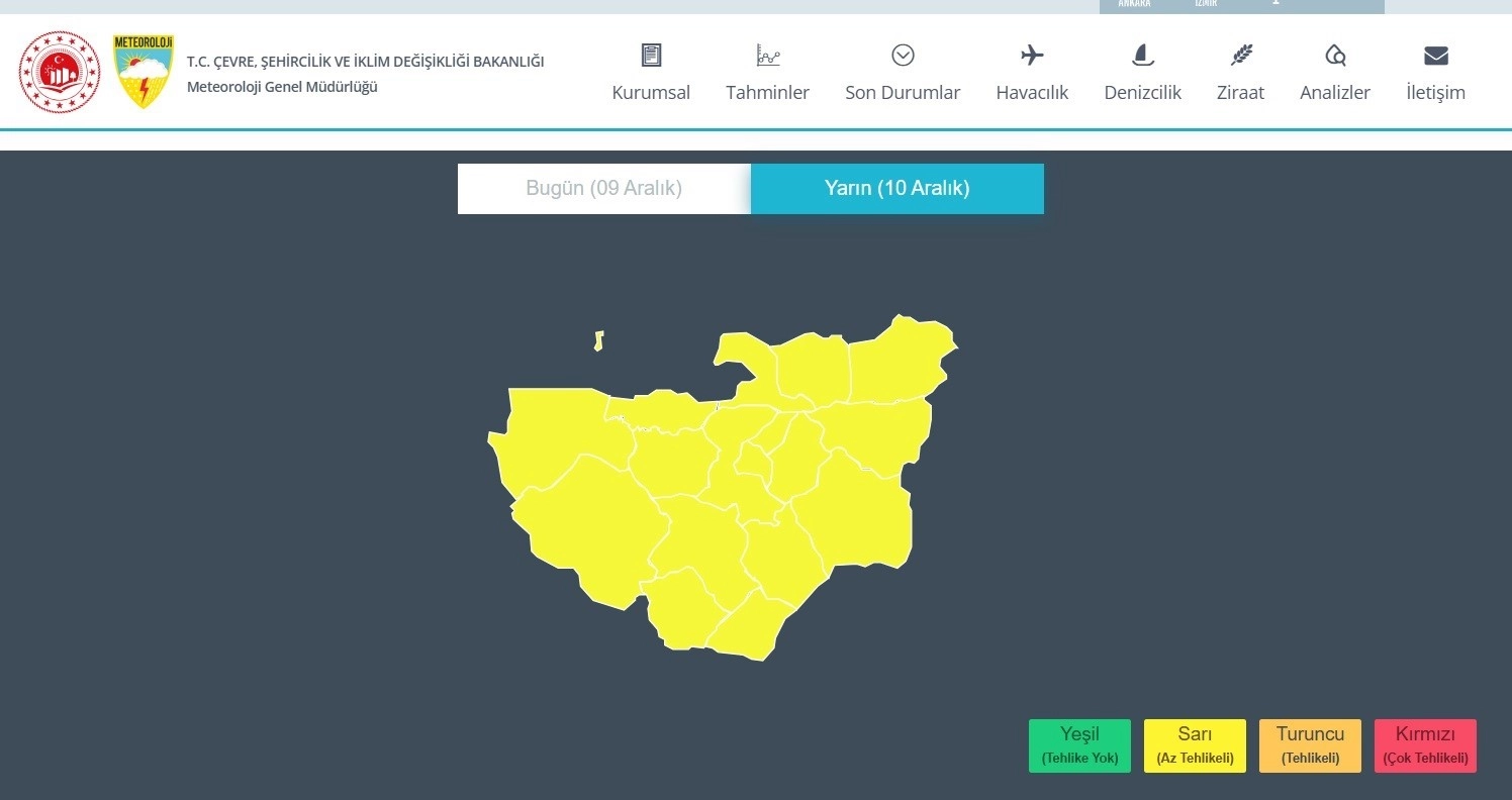 Meteoroloji Genel Müdürlüğü yarın Bursa için sarı uyarıda bulunuldu.