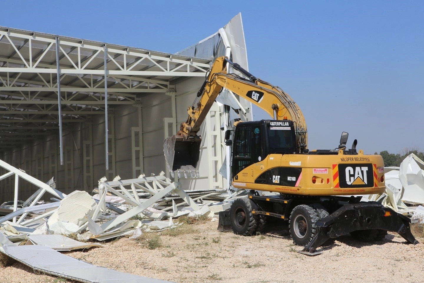 Nilüfer Belediyesi’ne bağlı ekipler, geniş güvenlik önlemlerinin alındığı yıkım çalışmalarında, zabıta ve polis kontrolü eşliğinde iki kaçak yapıyı daha kullanılamaz hale getirdi.