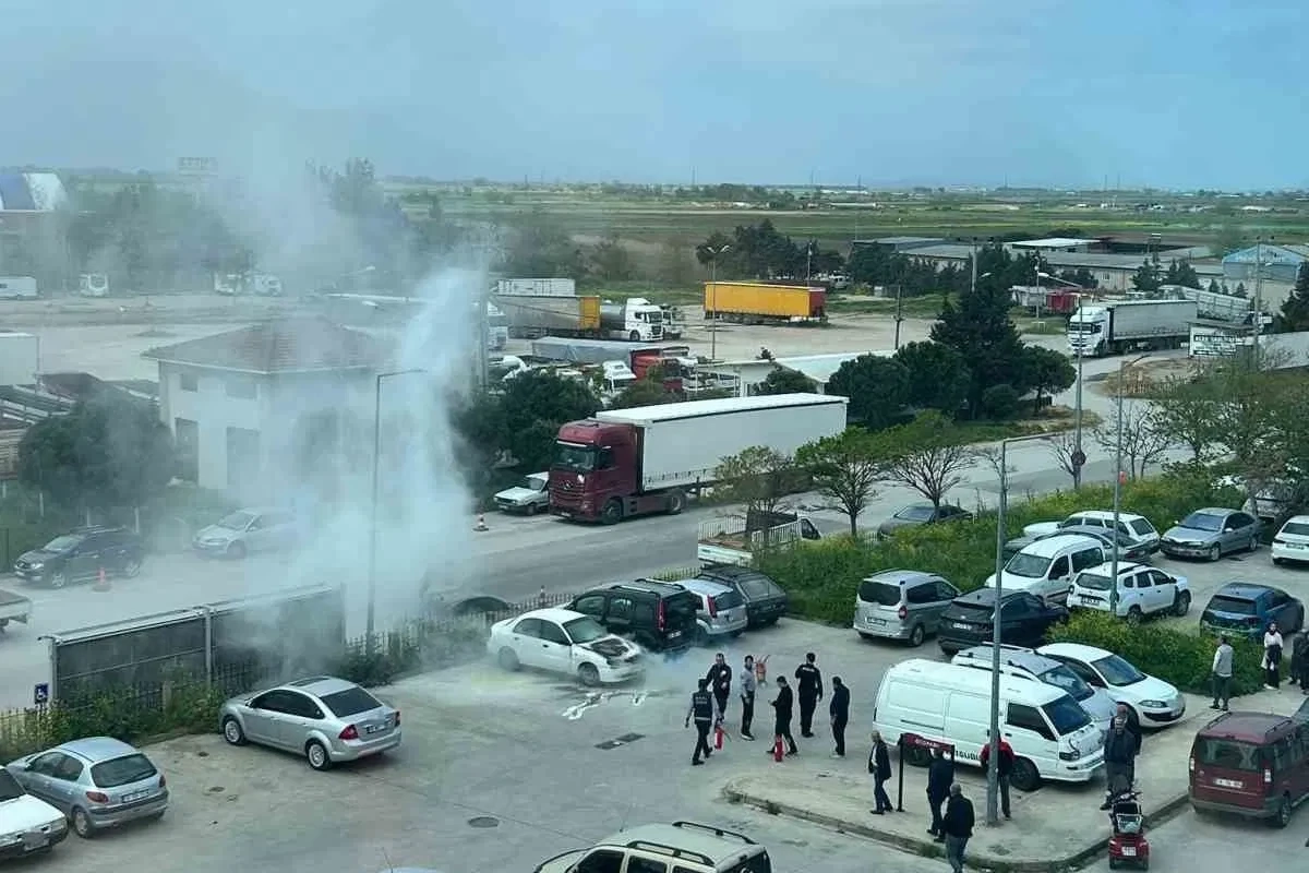 Bursa’nın Karacabey ilçesi Karacabey Devlet Hastanesi’nin otoparkında park halinde bulunan bir otomobil, henüz belirlenemeyen bir sebeple motor kısmından yanmaya başladı. Yangın, itfaiye ekiplerinin müdahalesiyle söndürülürken, araçta büyük çapta maddi hasar oluştu. Edinilen bilgiye göre, hastaneye yakınını getiren Turgay Ç. isimli sürücü, 77 AAK 391 plakalı aracını hastane otoparkına park etti. Saat 10.45 sıralarında aracın motor kısmından dumanlar yükselmeye başladı. Kısa sürede alevlere dönüşen yangın, otoparkta paniğe neden oldu. İhbar üzerine olay yerine ilk olarak polis ekipleri sevk edildi. Polisler, yangın tüpüyle müdahalede bulunmaya çalışırken, kısa süre sonra gelen itfaiye ekipleri yangını kontrol altına alarak söndürdü. Yangın sonucu araç kullanılamaz hale geldi. Olayla ilgili soruşturma başlatıldı. Yangının çıkış sebebinin belirlenmesi için çalışmaların sürdüğü öğrenildi.