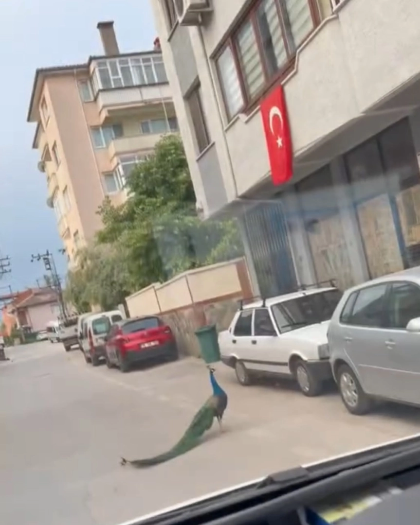 Olay, sabah saatlerinde meydana geldi. Osmangazi ilçesi Hamitler Mahallesi’nde sokak aralarında ilerleyen bir sürücü, yol ortasında dolaşan tavus kuşunu fark edince aracını yavaşlattı. Egzotik görünümüyle dikkat çeken kuş, bir süre yolda ilerledikten sonra yol kenarına doğru yöneldi. O anları kayda alan sürücünün şaşkınlığını arkadaşlarıyla paylaştığı anlar ise kameraya yansıdı.