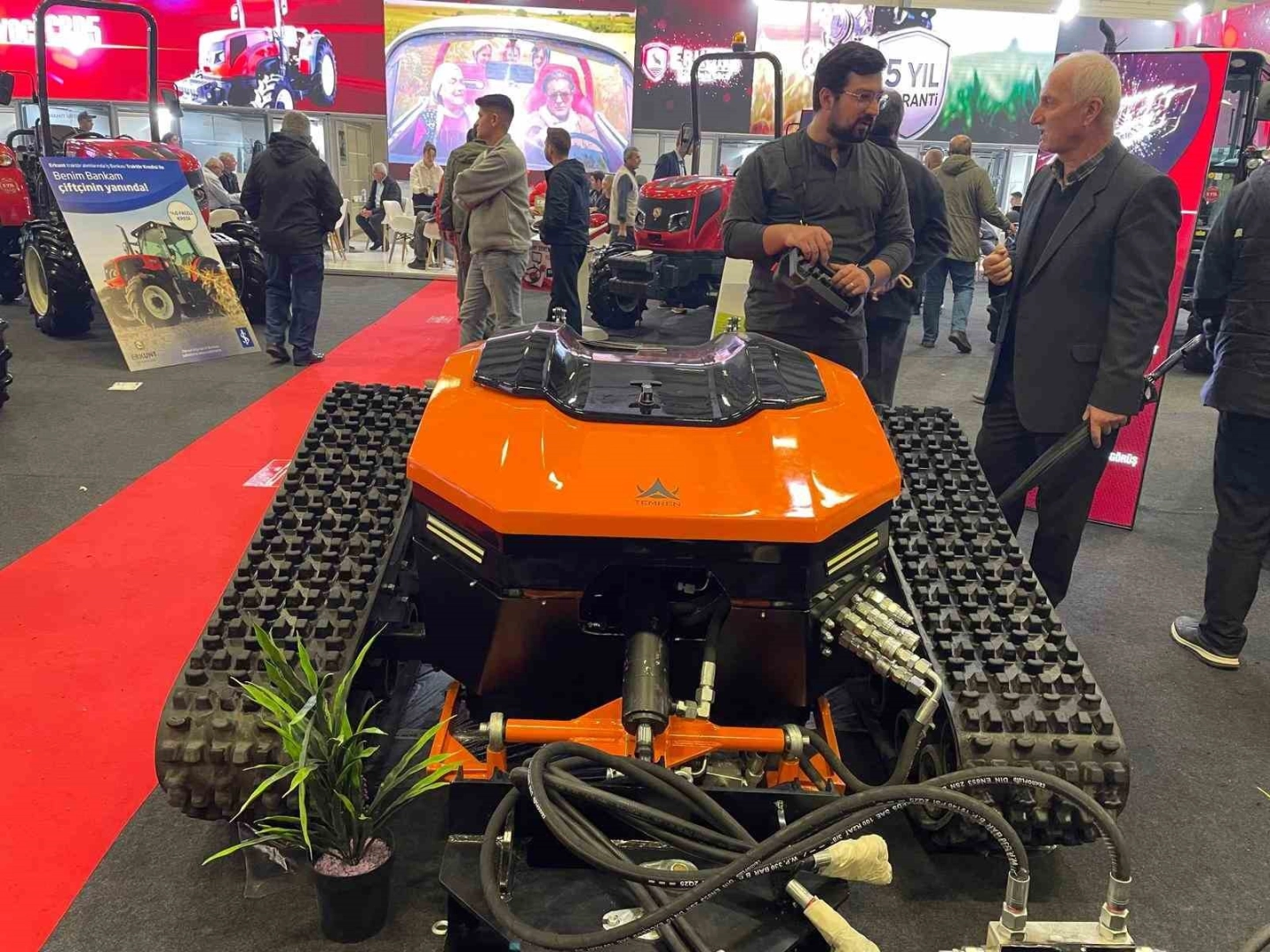 Traktörler ve teknolojik ürünlerin sergilendiği Bursa Tarım Fuarı’nda uzaktan kumandalı tarım makinesi genç yaşlı tüm çiftçilerin ve alım heyetlerinin ilgisini çekti.