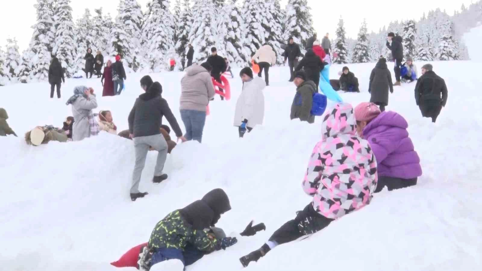 Kayak merkezinde pistlerin hıncahınç dolduğu görülürken, özellikle acemi kayakçıların zaman zaman düşerek renkli görüntüler oluşturduğu anlar kameralara yansıdı. Aileleriyle birlikte Uludağ’a gelen tatilciler, soğuk havaya rağmen eğlenceli vakit geçirdi.