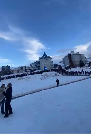 Zirvede yazdan kalma bir gün yaşamak isteyen günübirlikçiler, keyfin mutluluğu fazla sürmedi. Hava sıcaklığının 10 derece civarında seyrettiği Uludağ’da, eğlendikten sonra aşağı inmek isteyen vatandaşlar, teleferiğe yöneldi. Ancak kuyruğun otellere kadar uzadığını görenler gözlerine inanamadı. Kuyruğa girenler, yaklaşık 1 kilometrelik kuyrukta adım adım ilerledi.