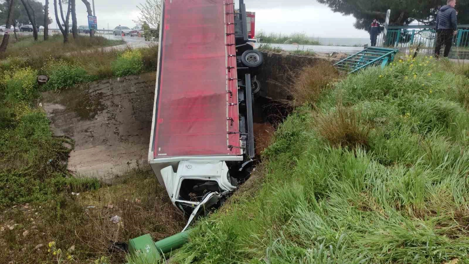 Kaza, saat 15.00 sıralarında Bursa’nın Orhangazi ilçesi Gölyaka yolu pompa istasyonu virajında meydana geldi. Edinilen bilgiye göre, Orhangazi istikametinden Gölyaka yönüne giden Mehmet Ç. (66) idaresindeki 16 Y 1055 plakalı kamyon, virajı alamayınca karşı yönden gelen Ali Y. (45) yönetimindeki 16 VM 368 plakalı hafif ticari araca çarptı. Çarpışmanın etkisiyle kontrolden çıkan kamyon yolun kenarındaki dere yatağına, hafif ticari araç ise yol kenarına savruldu. Kazada her iki sürücü de araç içinde sıkıştı.