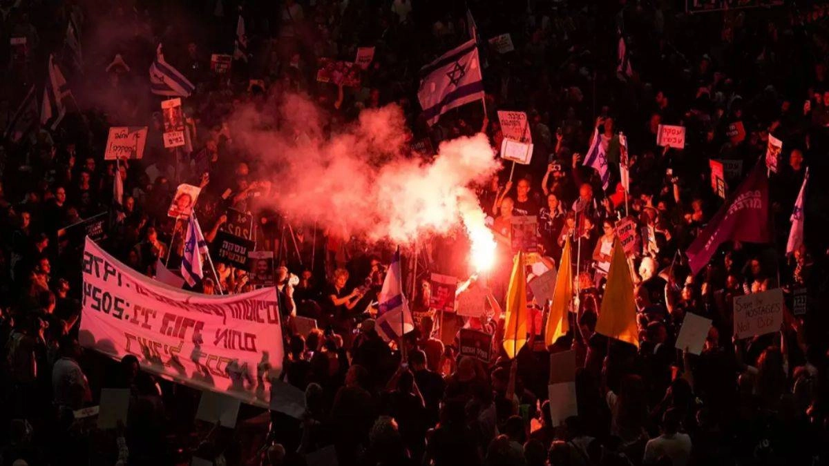 Başkent Tel Aviv'de ana caddeleri kapatan göstericilerin, Gazze'de tutulan esirlerin salıverilmesi talebinde bulunarak "hepsinin geri gelmesini istiyoruz" şeklinde sloganlar attığı aktarılan haberde, göstericiler ile polislerin karşı karşıya geldiği ifade edildi.