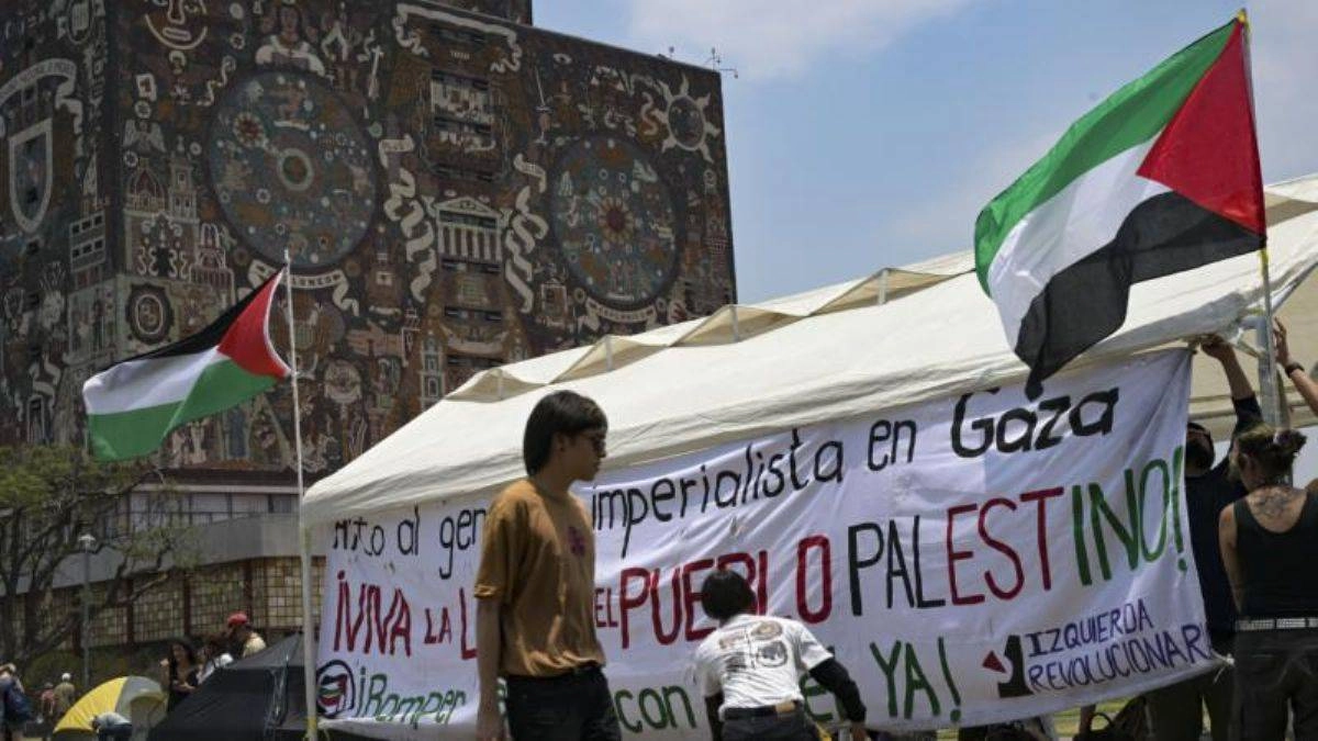 Başkent Meksiko'daki Meksika Ulusal Özerk Üniversitesi (UNAM) Rektörlüğü önünde Gazze ile dayanışma kampı kuran öğrenciler, İsrail'in Gazze saldırılarını protesto etmenin yanı sıra Meksika hükümetinden İsrail ile diplomatik ilişkileri kesmesini istedi.
