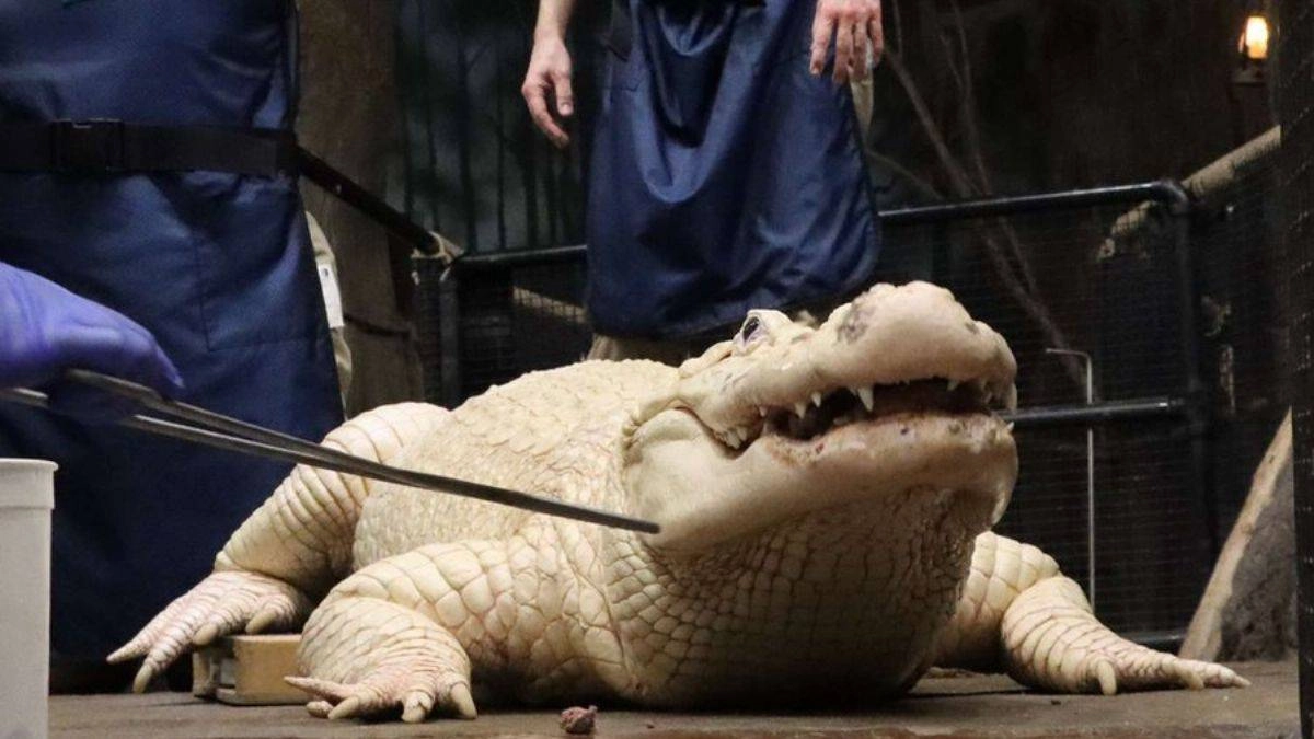 Mavi göz ve beyaz deriye sahip nadir görülen lösistik timsah türündeki hayvanın ameliyatı başarılı geçti ve iyileşti.