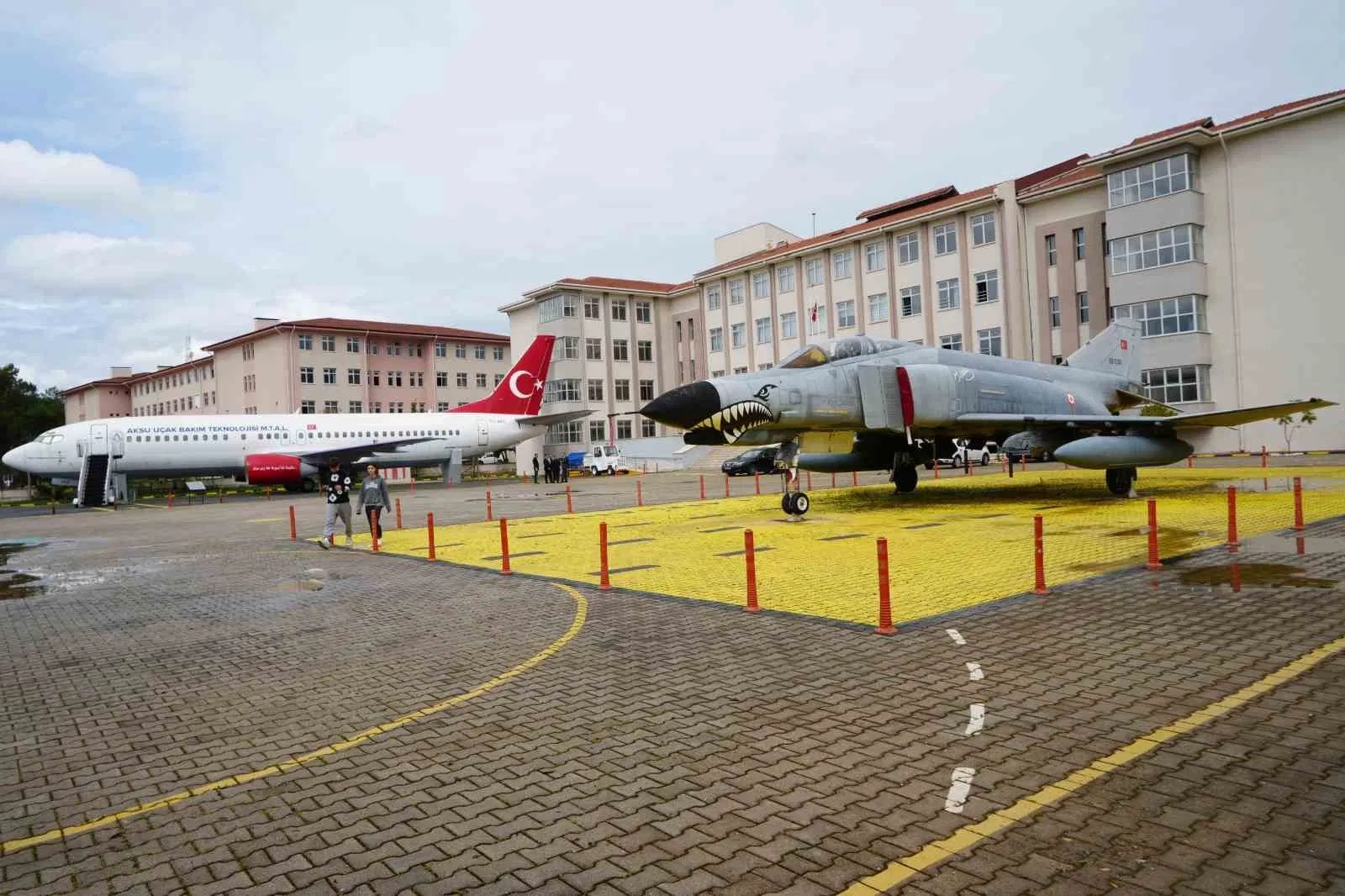 Bahçesinde Boeing 737 eğitim uçağı ve F-4 Phantom ile geleceğin havacılarını yetiştiren lise