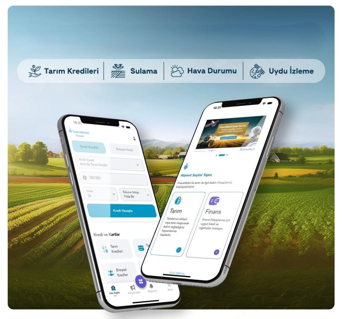 Yenilenen uygulamada çiftçiler, İMECE FİNANS’a giriş yaparak tarım bankacılığı alanında hizmet veren finansal kuruluşların tarım kredilerinin ve tarım kartlarının özelliklerini karşılaştırabiliyor, tarım sigortalarına ve ihtiyaçlarına en uygun finansal ürüne şubeye gitmeden başvurabiliyor. Akıllı Tarım Teknolojileri