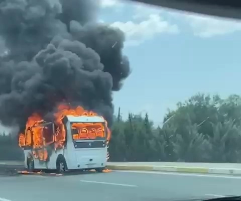 Balıkesir’in Edremit ilçesi Narlı Mahallesi’nde seyir halindeyken alevlere teslim olan yolcu minibüsü kullanılamaz hale geldi.