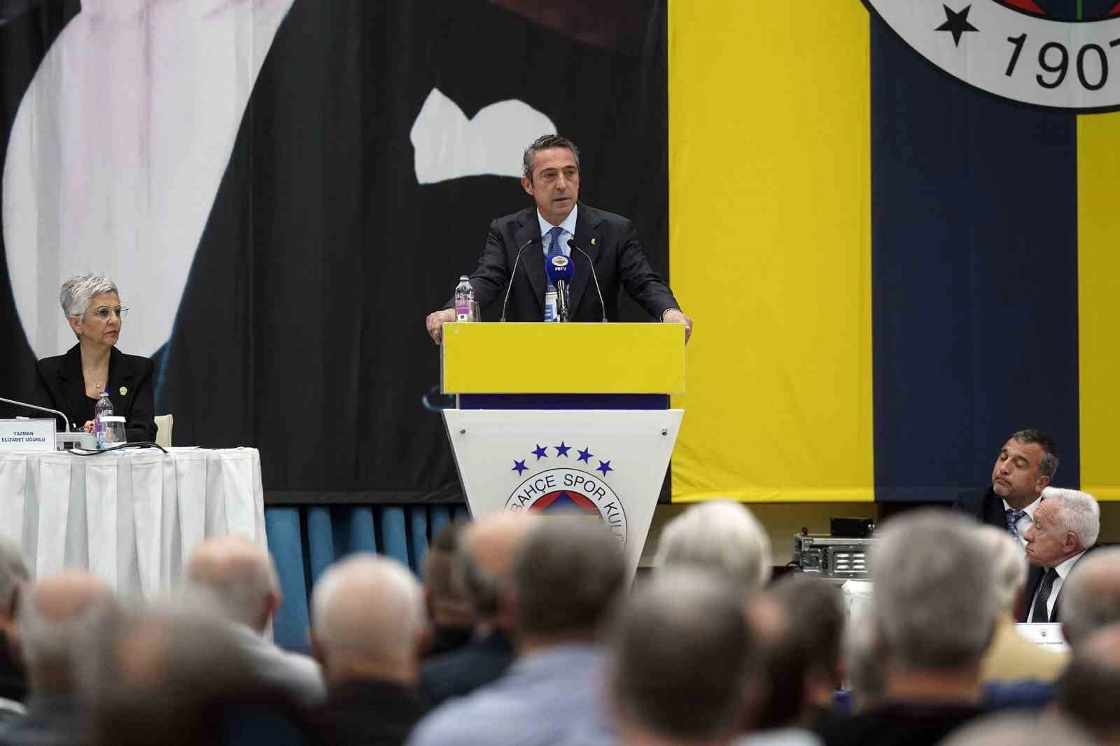 Toplantıya hazırlanırken çok heyecanlı olduklarını belirten Koç, "Güzel projelerin haberlerini verecektik. Sizleri daha iyi hitap edeceğimiz gelişmeleri paylaşmak istiyorduk. Mutluyduk, psikolojik avantaj bizdeydi. 11 puandan 3 puana inmiştik. Kalan fikstürde inancımız bu puan farkının kapatılacağı yönündeydi. Hafta sonu pazar günü 5 müsabakamız vardı. Hepsi kendi etaplarında final maçlarıydı. Kadın basketbolda bir kez daha şampiyon olduk. Hiç kimsenin beklemediği, hiç beklenmedik rakiplere karşı son yıllarda olduğu gibi kendi stadımızda kaybettiğimiz puanlarla şampiyonluk şansımızı sekteye uğrattık. Haklı olarak bir anda bütün camianın ruh hali değişti, karamsarlaştık. Birçoğunuz öfkelendi. Bizim burada olmamız, sizden farklı duyguda olmamız değil. Bizler de aynı duygulara sahibiz ama biz üzülüp, şikayet etme lüksümüz yok. Çalışıp bu sıkıntıları gidermek zorundayız. Her şeye rağmen kulübümüzün geleceği açısından, sabreden, bize güvenen, istikrarın yanında olanlara da teşekkür etmek istiyorum. Geçen sene renkli, çetin, yeri geldi mi gergin bir kongre yaşadık. Bir kez daha Fenerbahçe demokrasisinin ne kadar değerli olduğunu herkese gösterdik. Bu kongrede camiamız bizleri bir dönem daha 3 yıllık göreve getirdi" ifadelerini kullandı.