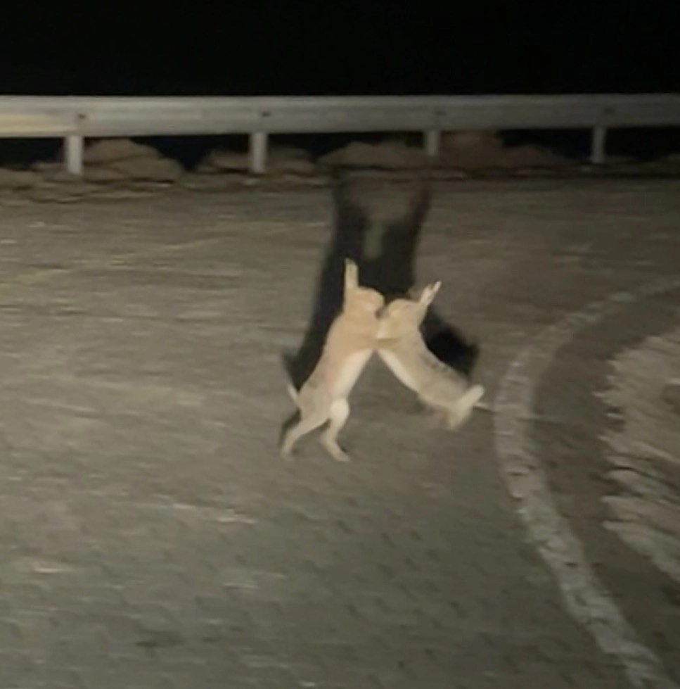 Çanakkale’nin Gökçeada ilçesinde kavga eden tavşanlar telefon kamerasına yansıdı