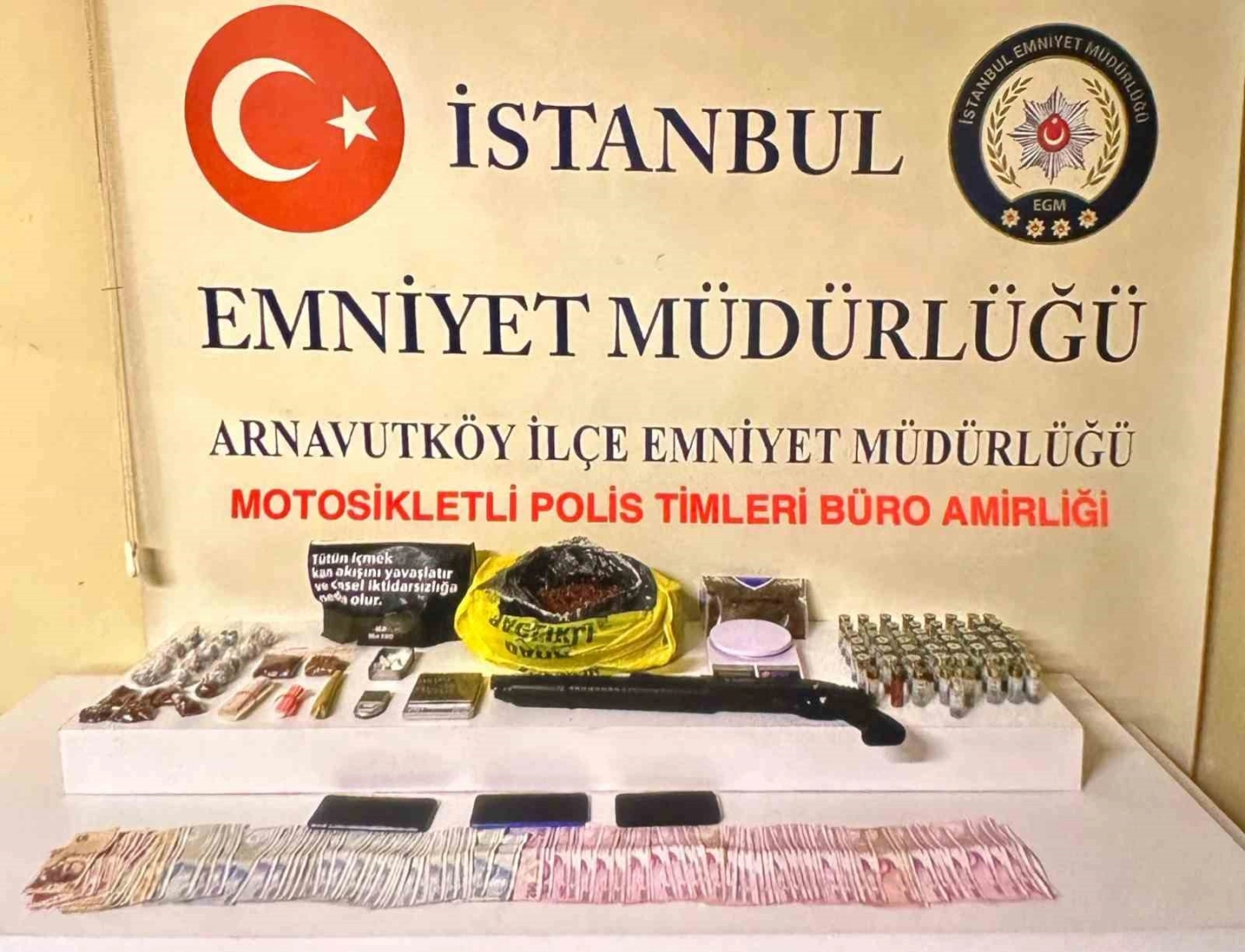Polis ekipleri devam eden çalışmalar kapsamında E.T. isimli şahsın evinde yaptığı aramalarda toplamda 22 parça satışa hazır ağırlığı 2 kilo 670 gram olan uyuşturucu madde ele geçirdi. Öte yandan ev içerisinde 3 adet hassas terazi, 1 adet ruhsatsız silah, 57 adet kartuş ve uyuşturucu madde satışından elde edildiği düşünülen yaklaşık 15 bin TL nakit para bulundu. Polis ekipleri tarafından gözaltına alınan şahıslar emniyet müdürlüğüne götürüldü.
